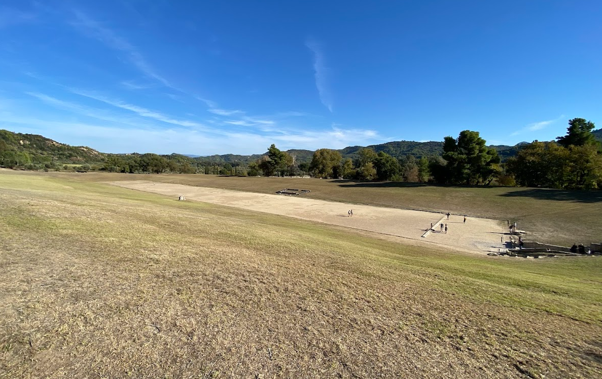 Ett grekiskt längdmått på 600 grekiska fot, men också namnet löparbana "stadion", t.ex. den i Olympia och Istimia och som Paulus refererar till i 1 Kor 9:24. Eftersom längden på den grekiska foten varierar måttet över tid och plats på allt från 150 till 210 meter, men troligast är att det under romersk tid var omkring 180-190 meter. Löparbanan på den antika stadion i Olympia (från 776 f.Kr.) var 210 meter lång. I Istimia (intill Korint) var banan (från 584 f.kr.) var 192 meter lång med sexton paralella banor. Det latinska stadium är är singular och stadia är plural.